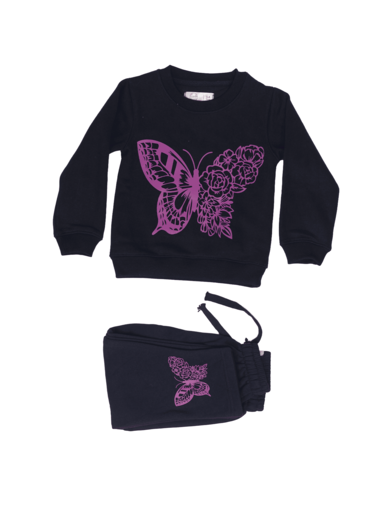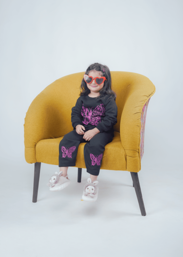 Let her express her unique style with this beautiful and comfortable butterfly tracksuit. The striking pink-on-black design is perfect for the fashion-forward kid.
