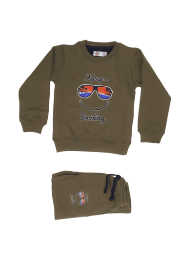 Let your little one’s style shine with our “Keep Smiling” Kids’ Tracksuit. This cozy and cool olive-green set is the perfect blend of comfort and style for any season.